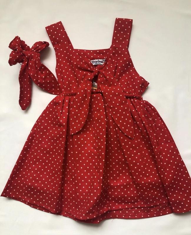 Ідеальне червоне платтячко в горошок з пов’язкою для маленької лялечки👗