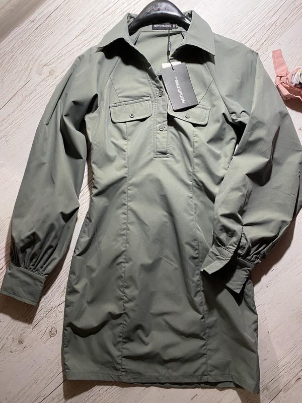 Сукня сорочка красивого кольору хакі з об‘ємними рукавами❤️ Розмір xxs. В ідеалі на дівчинку підлітка або худеньку дівчину)