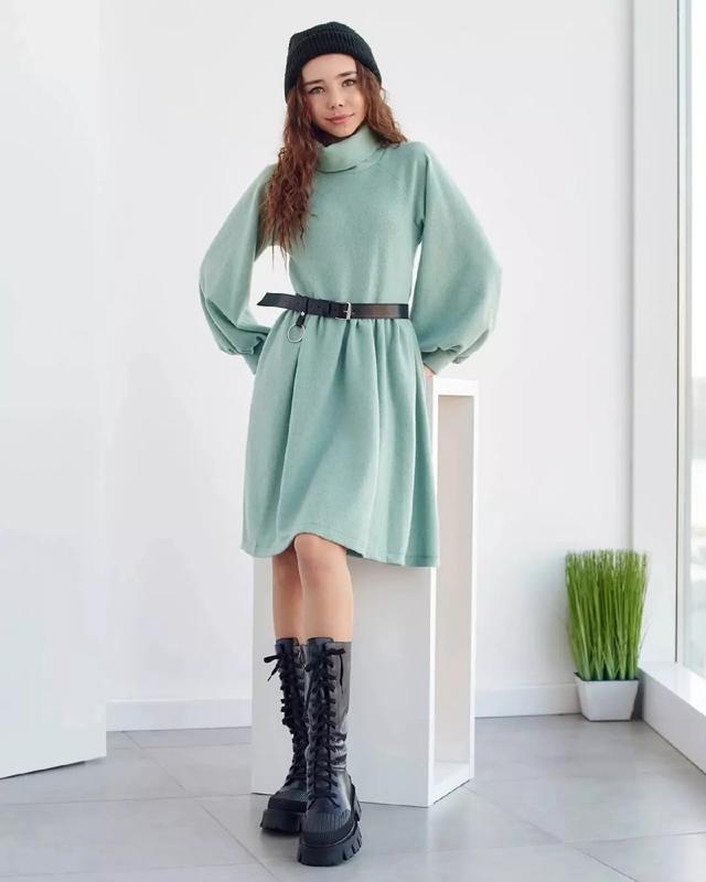 Ландыш В НАЯВНОСТІ!!! Хітове тепленьке платтячко Рукав фонарик з манжетом Поясок в комплекті Турецький трикотаж- в'язка з додаванням ангори РЕКОМЕНДУЮ!!! 152р (1 шт) довжина 86,рукав від горловини 58,пог 38см