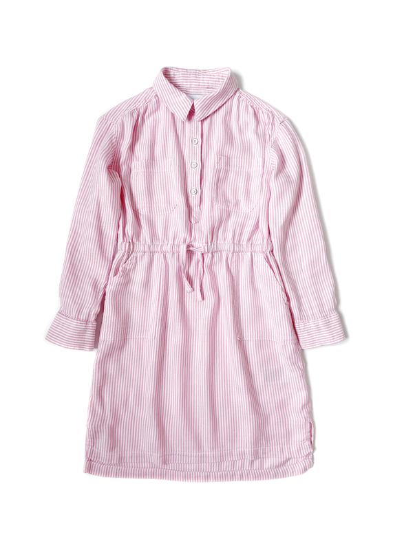 Крутое платье-рубашка в тонкую розовую полоску от бренда Old Navy. Модель выполнена из мягкой и легкой саржевой ткани из смеси хлопка и вискозы. В верхней части платья отложной воротник и планка на груди с четырьмя пуговицами. Длинные рукава с манжетами на пуговицах с возможностью подвернуть и зафиксировать рукава. Накладные карманы на груди и накладные карманы на боковых швах. Эластичная талия с регулируемым шнурком. Подол с маленькими разрезами по бокам. Спинка на пару сантиметров длиннее. Указан размер для девочки 6-7 лет. Замеры: ПОГ 39 см ПОТ 29 см (еще тянется) ПОБ 41 см Плечи 34 см Рукав 39-40 см Длина от плеча до низа 64 см спереди/67 см сзади Состав: 55% хлопок, 45% вискоза. Сделано в Индии. Состояние идеальное.
