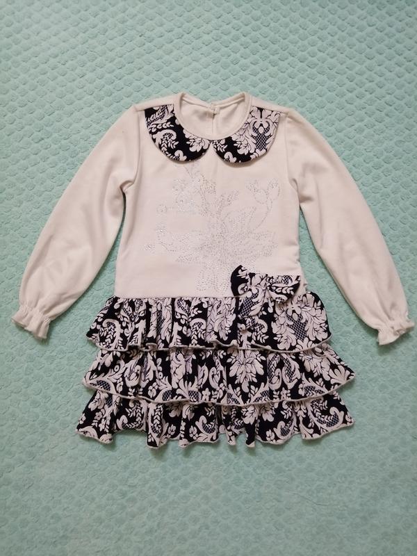 Очень красивое нарядное платье. Сзади завязывается на поясок. Пышный низ. Рукав на резинке. Состояние идеальное. На 3 года Замеры : Длинна - 50 см ПОГ - 27 см Рукав - 36 см