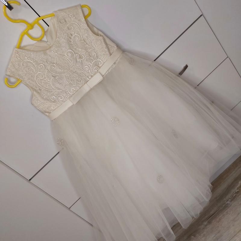 Очень красивое нарядное платье для девочки, размер 116-122 цвет слоновой кости пишная юбка с Фатина корсет с бисером