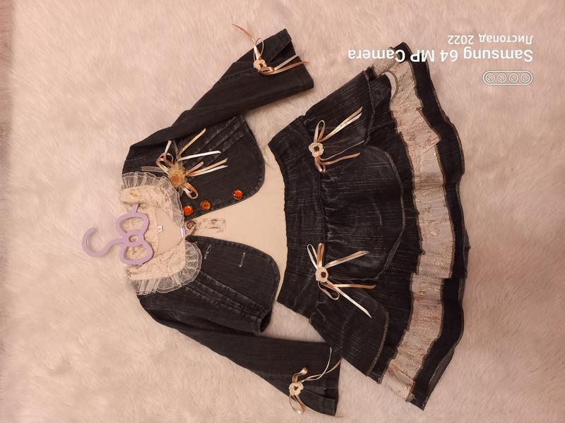 Сарафан і жакет. Джинс мягкий, стрейч. Темно сірий. Верхня частина сарафан товстий але дуже мягкий і приємний трикотаж. Без плям і нюансів. Речі моєї дитини.