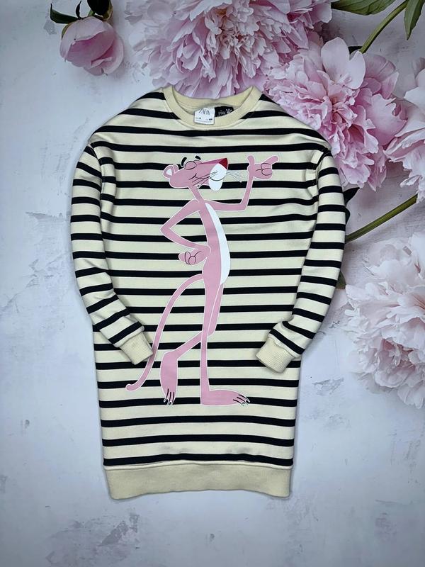 Платье «Розовая пантера» Ткань петля Состояние отличное 🏷️Zara 8 лет/128 р Длина 66. ПОГ 42. Рукав от шеи 55
