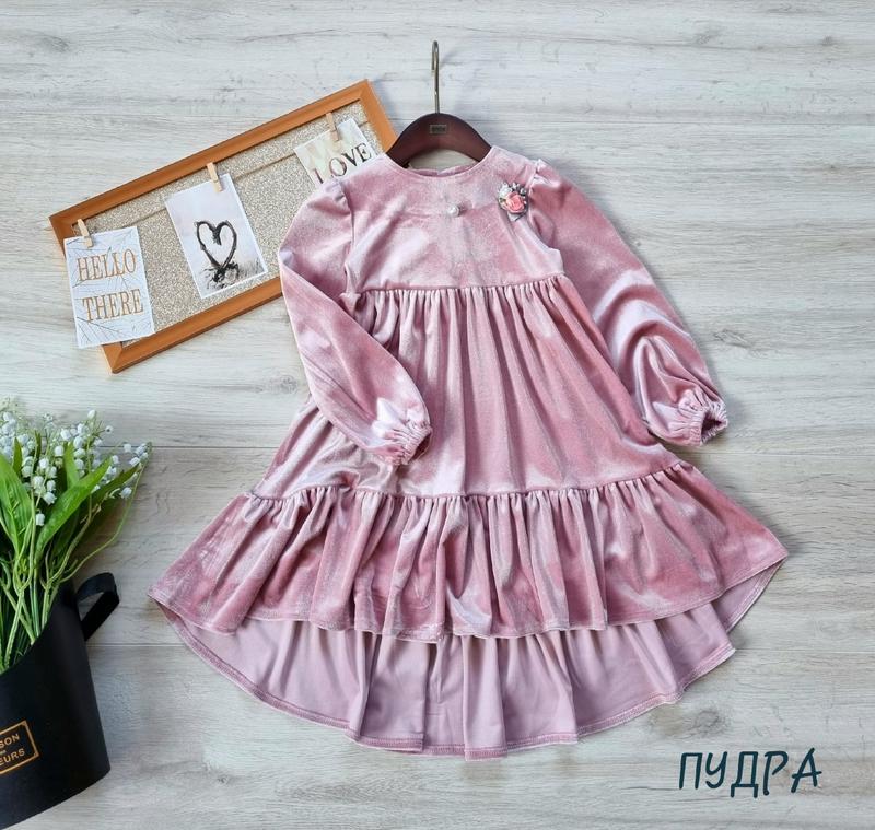 НОВИНОЧКА Красивое платье для маленькой модняшки тканина велюр, ззади удлиненное, украшено брошью РЕКОМЕНДУЮ! 110-длина 54/63,пог 30,рукав от плеча 36 116-длина 58/65,пог 31,рукав от плеча 39 122-длина 60/69,пог 32,рукав от плеча 43 128-длина 64/74,пог 33,рукав от плеча 45 134-длина 67/77,пог 35,рукав от плеча 48 +-1 см Цена 580 грн арт72