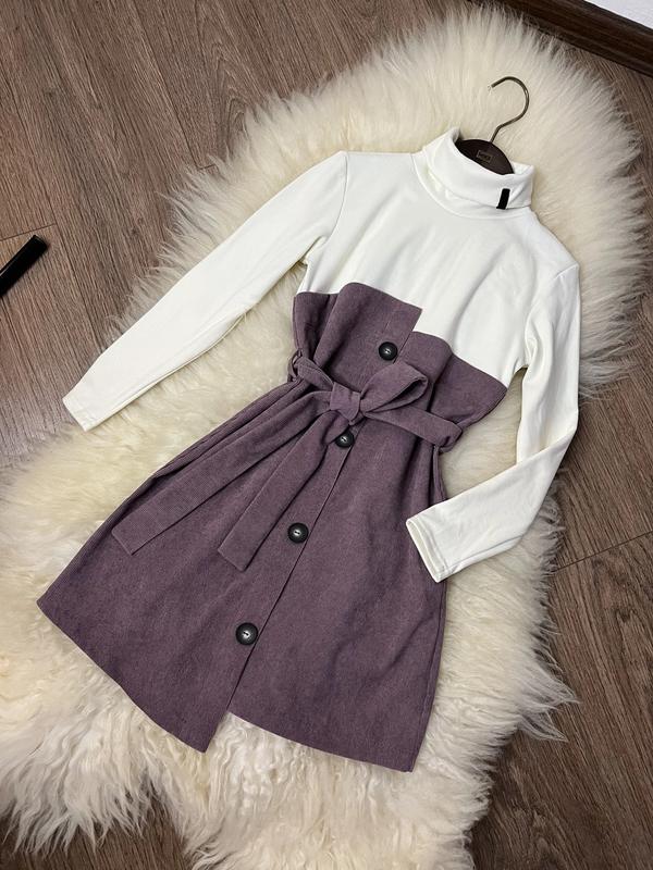 ток Стильное и теплое платье для девочки термо трикотаж и вельвет поясок в комплекті замеры-длина / рукав / п********** 140-68/46/36 146-71/48/38 134р-2шт 140р-1шт 146р-2шт