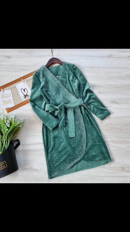 тканина велюр гарної якості На запах, в поясі пришите Ззаді зав'язуються на поясок 146(1 шт)-довжина 75,рукав від плеча 50,пог 37