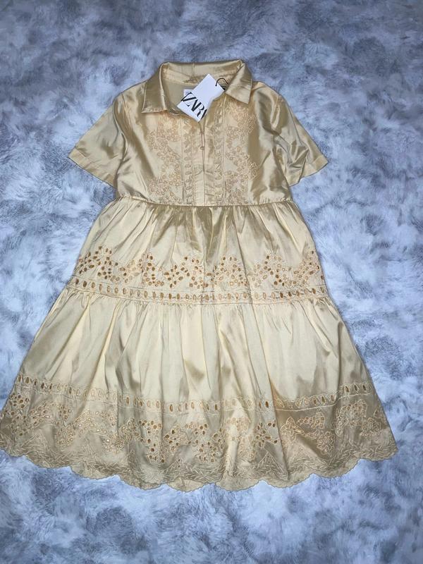 Новое Платье Zara Подкладка коттон Застёгивается впереди на 2 пуговки 🏷Zara 10 лет Длина 83(28). ПОГ 40