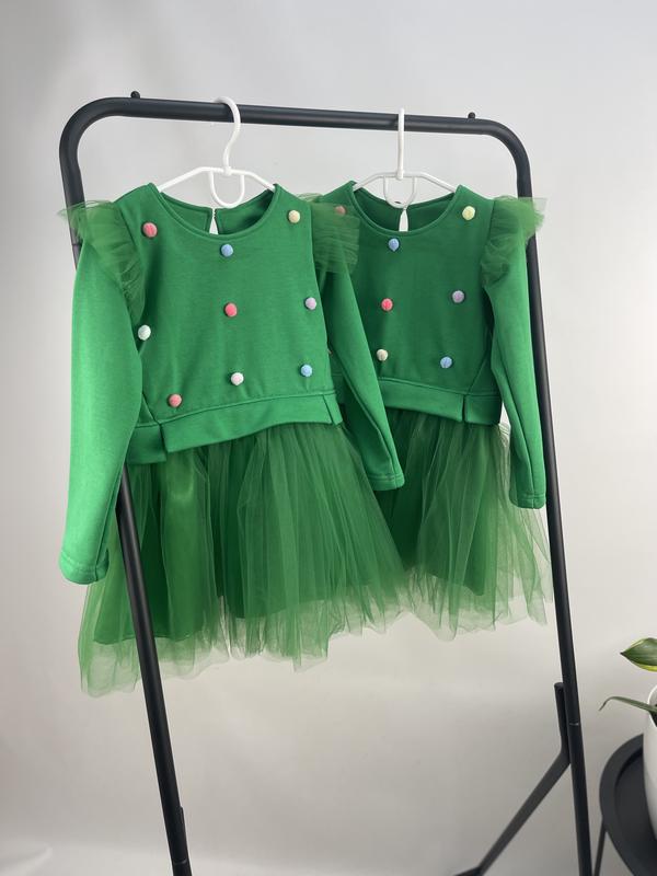 Платье елки трикотажное зеленое с декором спереди пышным фатином