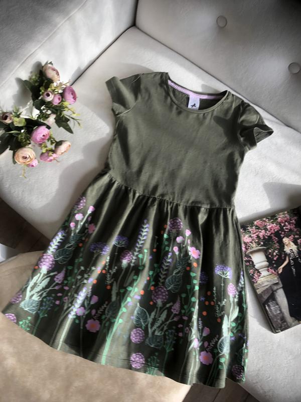Бавовняна сукня для дівчинки кольору хакі. бренд Palomino. Платтячко зручне, тканина приємна до тіла. Розмір по бірці 122. Заміри: 1/2 ОГ 32-35 1/2 ОТ 32-35 1/2 ОБ 52-55 довжина 65 від плеча до талії 30 плечі 28-32