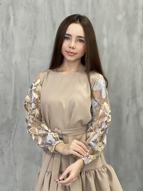Праздничное платье с изысканным гипюром✨✨✨ Размер 128-164 ✨✨✨ тканина креп-костюмна Замеры -/+ 1-2см: 128р- длина 68/пог 38/рукав от плеча 48 140р- длина 71/пог 40/рукав от плеча 52 152р- длина 77/пог 43/рукав от плеча 53 164р- длина 80/пог 45/рукав от плеча 54 164-продано ‼️‼️запросите о наличии!!️‼️ Полная оплата на карту 76951 или предоплата100грн. если наляжным платежем76. Отправляю Новой почтой тильян, Укрпоштой ISO+5грн.за упаковку ISO