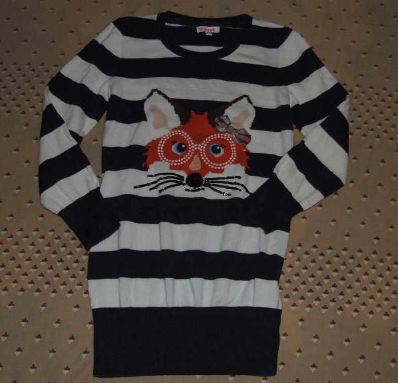 Хлопковое платье теплое туника девочке 8 - 9 лет bluezoo