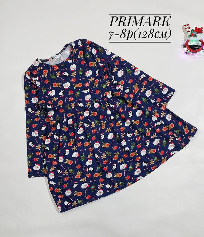 Primark на 7-8 лет (122-128 см), новогоднее трикотажное платье, (100% хлопок), состояние идеальное, (длина 60 см, плечи 28 см, полуобхват груди 32 см, рукав от плеча 40 см)