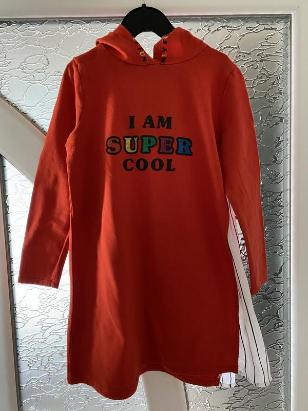 Фото На тілі немає, круглий комір з капюшоном, рукави довгі злегка приталені, сукня вільного фасону з боку біла вставка в смужку, попереду букви з легким блискучим напиленням) на флісі-середноі щільності Підійде на 4-7 років, орієнтуйтеся по замірах Сліди носіння незначні,місцями можуть бути незначні плямки,в ціні враховано Продається так як є без притензій і без повернення Довжина 59 см) Плечі 28 см) Пог 35,5 см) Піт 43 см)) Побіди 47 см) Знизу 53,5 см) Рукав 42,8 см) Недорога, але якісна і стильна одяг компанії ******** підкорила світові рітейлери і має свою армію шанувальників. Зовсім молодий бренд може похвалитися зірковими кампейнами, в яких брали участь топові моделі і популярні дівчата. Колекції розробляються і продумуються до найдрібніших деталей, де враховуються останні модні тенденції і виготовляються у різних стильових напрямках