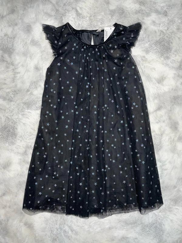 Чёрное платье с серебряными,блестящими звёздами. Отлично подойдёт на любой праздник или тематическую вечеринку. ▫️2 слоя фатина + подкладка ▫️блестки не осыпаются ▫️Лёгкое и не стесняет движений 🔹 Бирки с возрастом нет(2шт) Длина 72. ПОГ 40. 🔹новое на 7-8 лет (400 грн) Длина 66. ПОГ 37-38