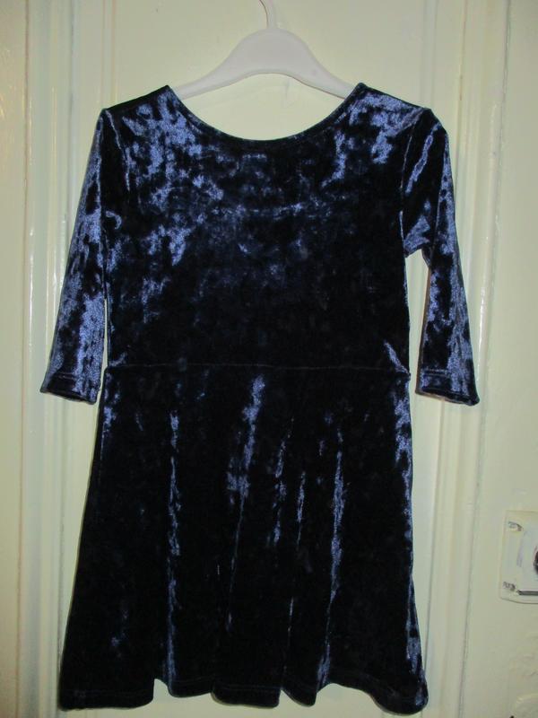 платье бархатное.синего цвета.полиэстер.ПОГ 31.ПОТ 27.длина54.длина рукава 25см