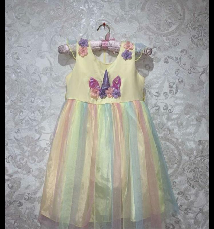 Шикарное платье Единорога 8-10лет Длина 79.5 ПОГ 36-36.5 ПОТ 35 Сзади молния и пояс. Платье полностью на тонкой хлопковой подкладке) Примерно на 8-10 лет См.по замерам.