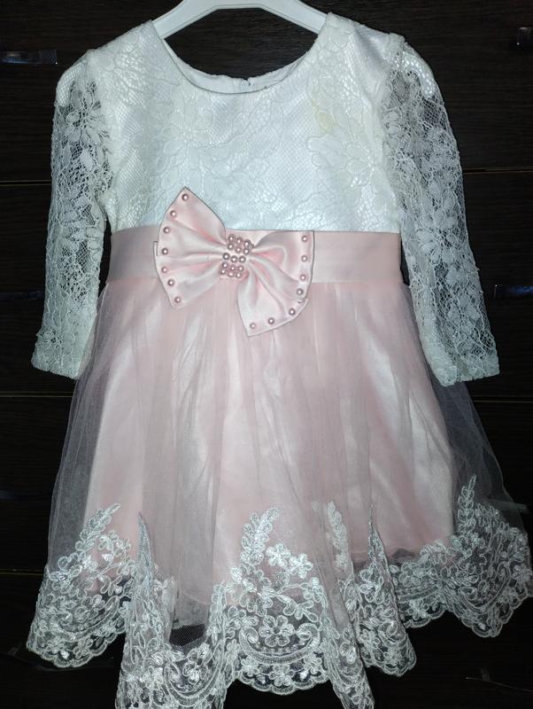сукня для дівчинки на рочок ідеальний стан колір білий,персик розмір 80 довжина 52 см пог 25 см рукав від плеча 27 см +5 см