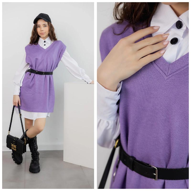 🧡В наличии 🧡 НОВИНКА Трендовое платье-рубашка (ткань х/б) + жилетка (ткань ангора двухсторонняя)+ поясок в комплекте КАЧЕСТВО СУПЕР! замеры: длина рубашки/пог/рукав/длина жилетки/п**********/69/49 146р-83/47/53/72/51