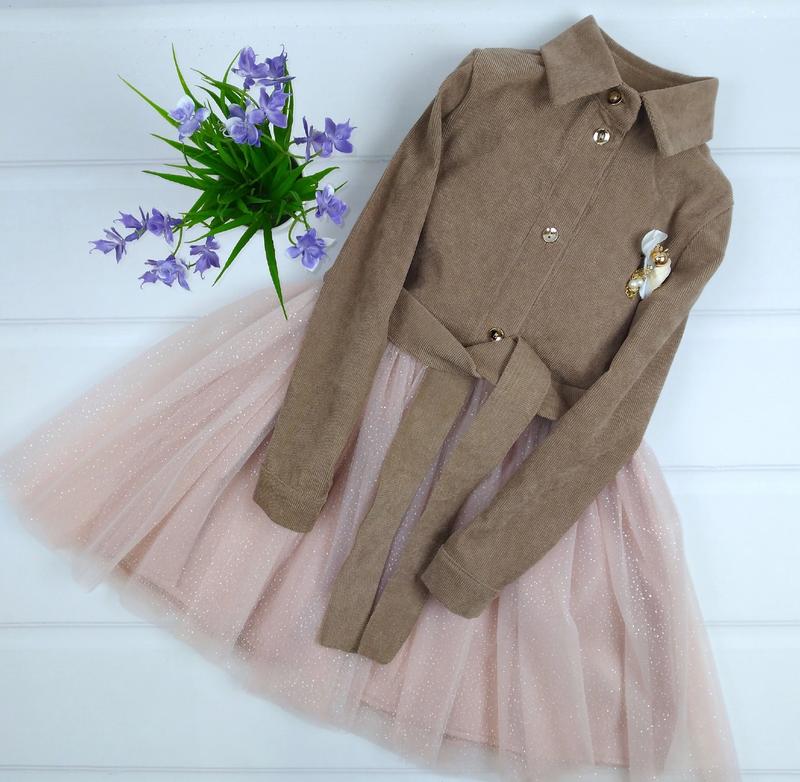 крылова Невероятно нарядное платье для красавиц❤️❤️ Спереди есть пуговицы, брош снимается, на рукавах также есть пуговицы, талия регулируется пояском который идет в комплекте Ткань: вельвет/ блестящая сеточка на атласной подкладке💥 Производитель : Украина 🇺🇦 р.122-3шт р.128-1шт р.134-2шт р.146-3шт ЗАМІРИ +/-1-2см!!! ▪️р.122 длина 65см/рукав от плечевого шва 44см /ПОГ 34см ▪️р.128 длина 69см/рукав от плечевого шва 46см /ПОГ 35см ▪️р.134 длина 71см/рукав от плечевого шва 48см /ПОГ 36см ▪️р.146 длина 77см/рукав от плечевого шва 51см /ПОГ 38см