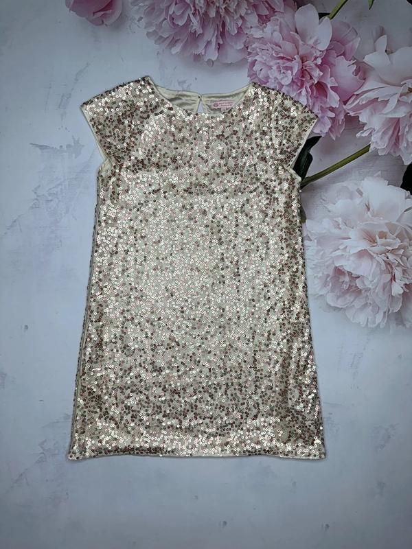 Платье кремового цвета с разноцветными пайетками Подкладка полиестер, не парит. Застёгивается сзади на пуговку. Пайетки пришиты качественно Состояние новое, только без бирки 🏷C&A 10 лет Длина 72. ПОГ 40