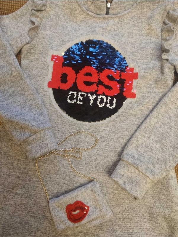 Платье с карманами, серый меланж, рост 146, длина 70 см. ширина талии 37 см. В комплекте маленькая сумочка