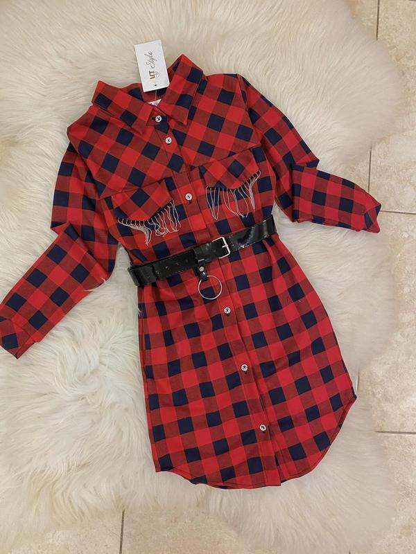 Плаття рубашка для красунь 💗 Тканина Французька клітинка трикотаж, пояс в комплекті, є кишені Заміри: довжина/пог/рукав 134 - 70/35/47 - 2 140 - 72/38/48 - 2 146 - 73/40/51 - 2 Сашулька