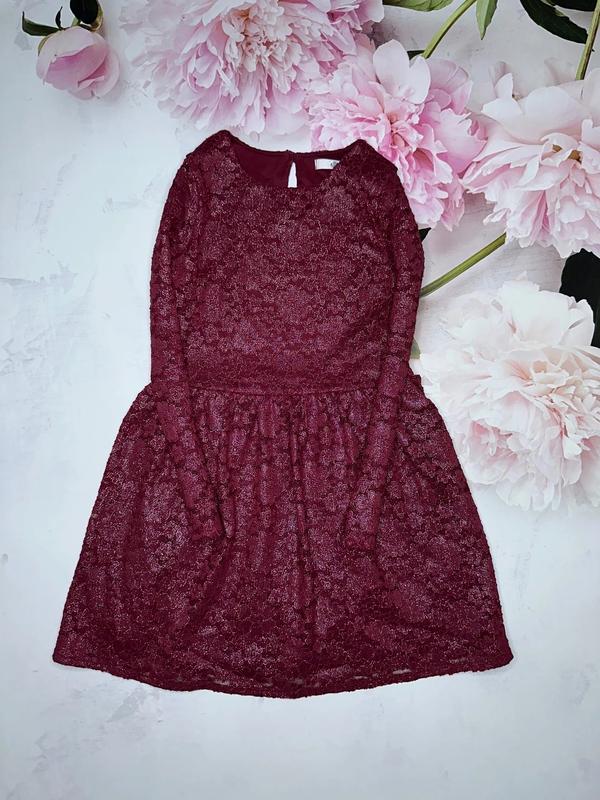 шикарное платье с блестящим наплением, не стирается. бордовый цвет 9-10 лет M&S длина 70(33). ПОГ 33+. рукав 48