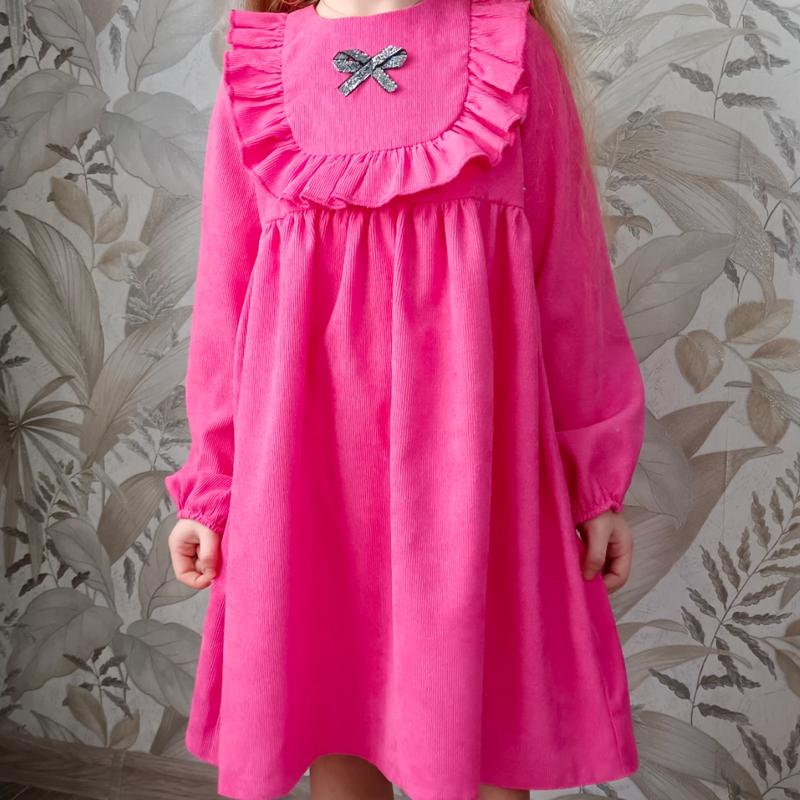 Сукня для дівчинки Розміри 104 110 116 128 Колір рожевий Тканина вельвет, зручне, святкове. На спинці замочок. Прикраса, нашитий бантик з люрексної стрічки. Розмір 104 Плечі 23 Довжина 54 Рукав від плеча 38 Полу обхват груді 32 Розмір 110 Плечі 24 Довжина 57 Рукав від плеча 39 Полу обхват груді 33 Розмір 116 Плечі 25 Довжина 61 Рукав від плеча 42 Полу обхват груді 34 Розмір 122 Плечі 26 Довжина 66 Рукав від плеча 44 Полу обхват груді 35 Розмір 128 Плечі 27 Довжина 70 Рукав від плеча 47 Полу обхват груді 38 Заміри виконані в ручну +-2мм