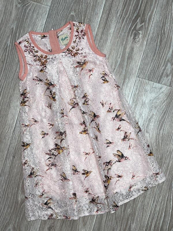 гипюровое платье на подкладке, с украшением на шее 5-6 лет длина 61. ПОГ 30.