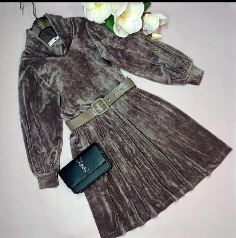 Сукня "Міллі" Тканина – королівський велюр. Поясок у комплекті. Якість шикарна. Виміри Довжина сукні/рукав/пог 📌158 -93/62/42
