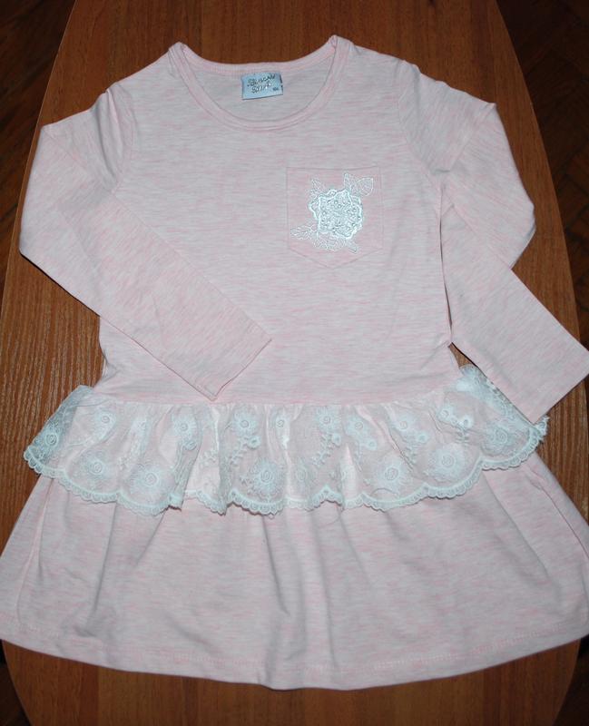 В наличии нежное платье с кружевной отделкой производства Турции фабрика Breeze 95% бавовна і 5% еластан цвет - меланж светло-розовый не теплa 92: длина 47 см, рукав 33 см, полуобхват груди 27,5 см 104: длина 53 см, рукав 38,5 см, полуобхват груди 30 см Строящиеся пистолетом Бирки фабрикой не предусмотрены