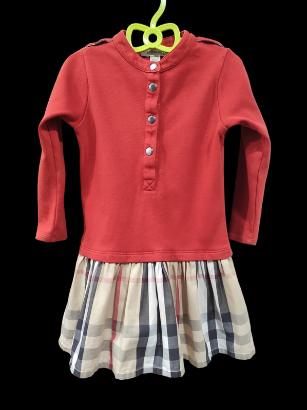 Burberry Kids Girls Dress Authentic Size 3T (3Y) В своих детских коллекциях бренд обращается к ярким, жизнерадостным и веселым мотивам. Стильное платье, выполненное из двух тканей: верх терракотовый хлопковый, низ - традиционное для модного дома Burberry элемент - культовая клетка Nova. Фурнитура высшего качества, с тисненым лого. Оригинальный, присутствует номерная бирка. Состав: 100% хлопок. Размер: 3 лет - 98-104см. Замеры: ПОГ 27см, рукав 32см, длина 52.