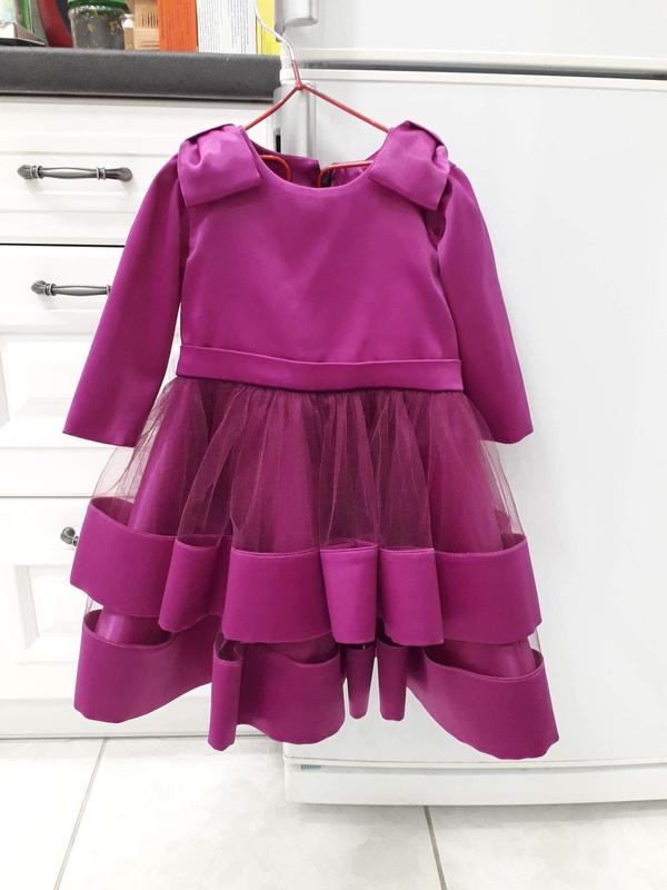 Сукня для дівчинки на рік, вдягалась один раз. Пошиття на замовлення по особистим параметрам дитини. Фото замірів додаю. За детальною інформацією звертайтесь в повідомлення. Має невелику плямку на правому рукавчику, ззаду. Але геть не помітну. Розмір 80.