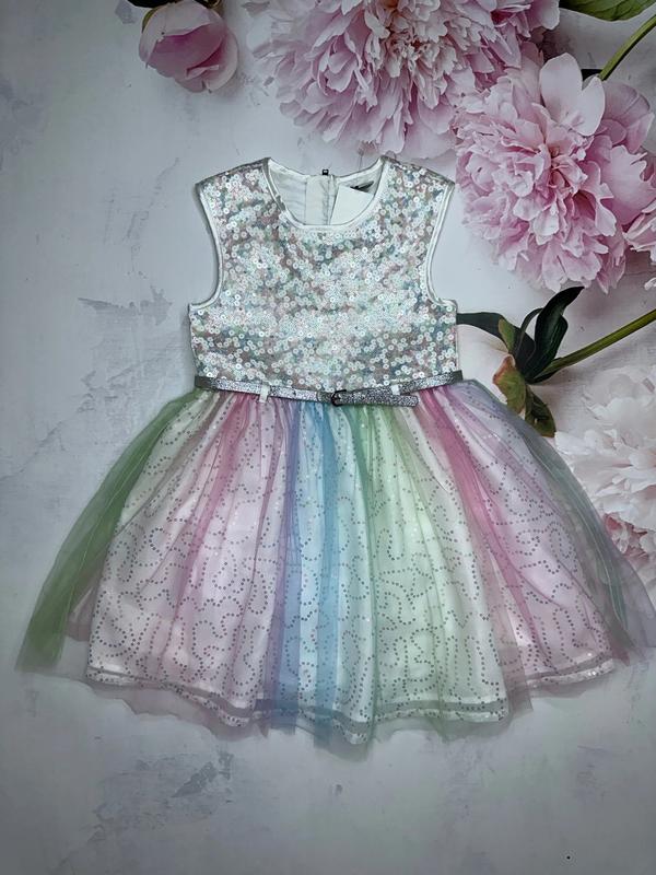 Новое разноцветное Платье с пояском Застёгивается сзади на змейку Юбка 4-х слойная 🏷TU 5 лет Длина 61(24). ПОГ 30