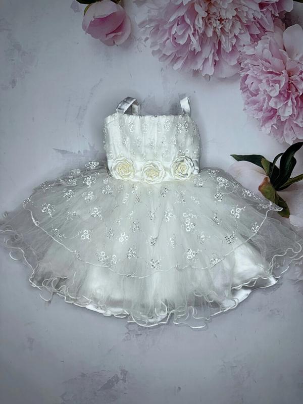 пишне, нарядне плаття, з вишивкою й об'ємними кольорами на поясі.підкладка поліестер. атлас/фатин бирки немає, дивіться заміри довжина 51 (21). ПОГ 24+, дуже добре та легко тягнеться, гумка не туга
