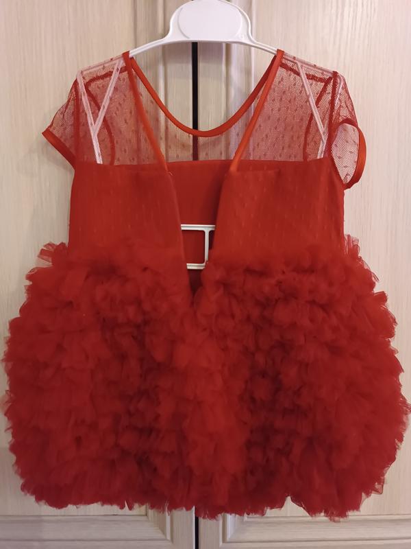 Красива сукня для маленької принцеси. Шили на 1 год, одевали только на праздник, на рост 74, длина 43 см, ширина под ручками 26 см.