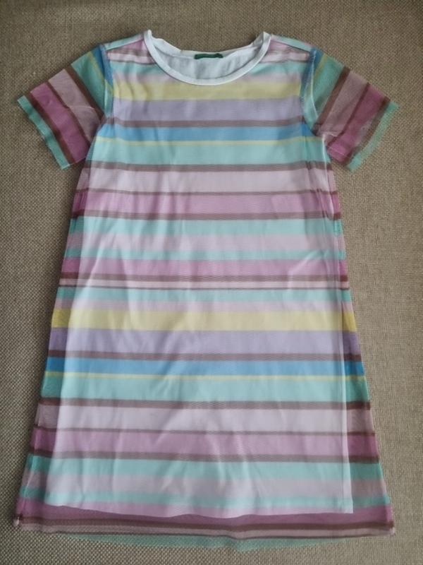 Красивое платье на 6-7 лет. Низ коттоновая белая подкладка, верх разноцветная сеточка Замеры длина общая от плеча спереди 66, длина подкладки 66, плечи 29, пог 33