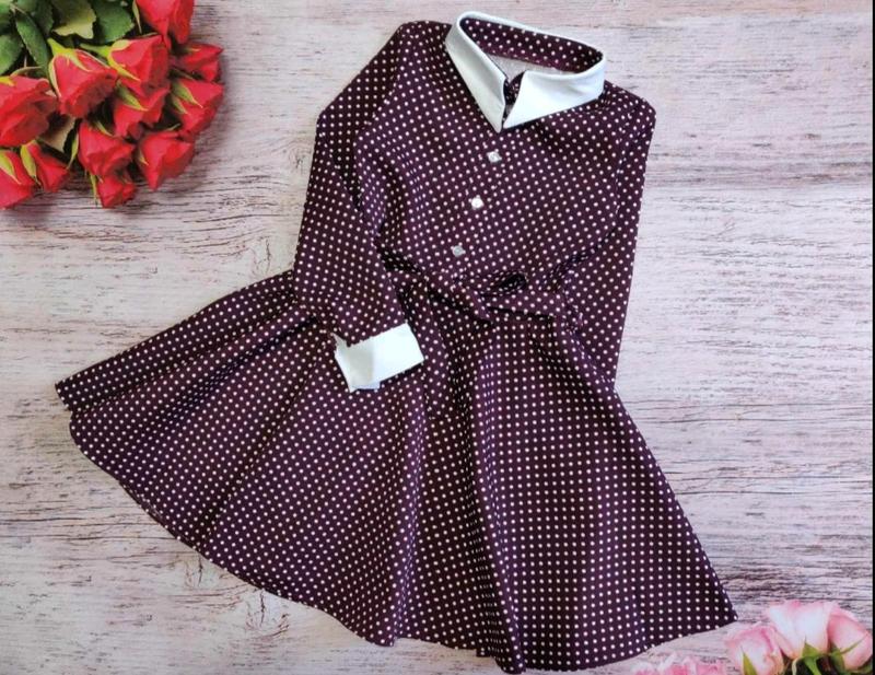 ток Платье для девушек "Wednesday" ткань в мелком горошек, манжеты и воротничок беленьки. Классика во всей красе. Тканина креп костюмка . Поясок в комплекте долж/рукав/пог 128р-67/46/32 134р-71/47,5/34 140р-73/50/35 146р-77/52/36 152р-82/54/37
