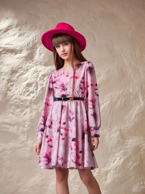 Стильное платье для девочек свободного кроя + поясок в комплекте Ткана : софт Размеры: 140-2шт 146-2шт 152-2шт 158-2шт 164-2шт лан Полномерное
