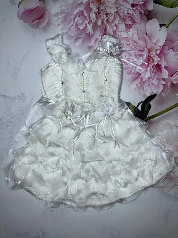 Шикарне біле ошатне плаття для маленької модниці. стан супер. має дуже бомбозний вигляд. підійде на будь-яке свято/ранчик. 2-3 г довжина 60. ПОГ 29. пояс 24
