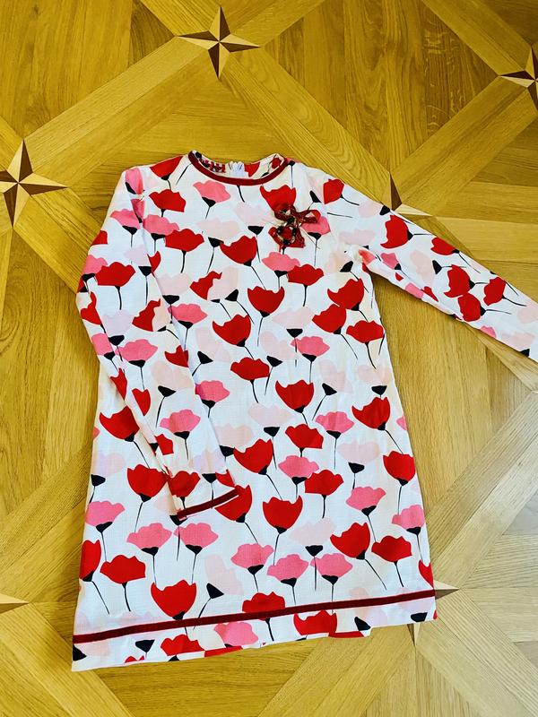 To be too-оригинальный бренд детской итальянской одежды🇮🇹 -качественный материал -благодарная один раз, идеальное состояние🤩 Замеры: *длина платья-69,5 см(зад платья чуточку длиннее перед) *ширина плечей-30 см *длина рукава-52 см Присущая брошь, которую можно снять при необходимости☺️ 8-9 лет