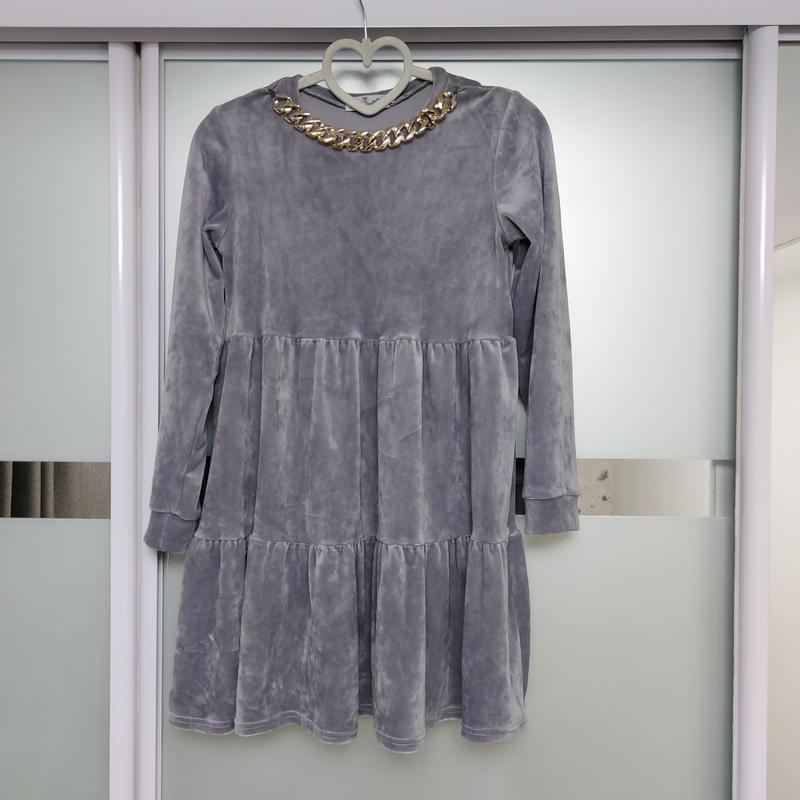 Удобное праздничное платье из мягкого велюра. Украшение можно снимать. Состояние новой вещи. Наделась один раз. Эффекты отсутствуют. Заміри на фото.