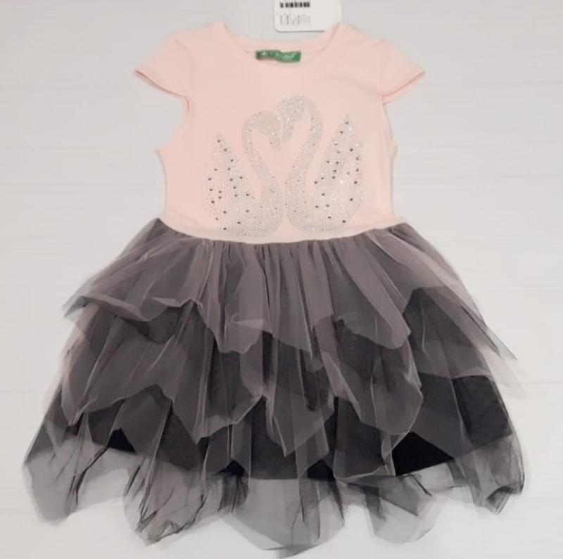 Очень красивое нарядное платье на девушек. Верх платья персикового цвета (хлопок) украшена камушками в виде лебедей. Низ платья пошит из фатина трех слоев. Подкладка из хлопка. Очень красиво смотрится в живую и приятная к телу. Производитель Турция фирма Cichlid