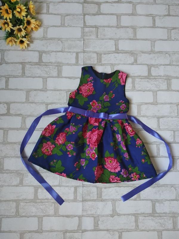 Платье синее с цветами на девочку новое Размер 3-4 лет,рост 98-104 см Замеры: длина 55 см плечи 23 см полуобхват груди 30 см полоубхват талии 29 см цвет синий,с цветами состав хлопок