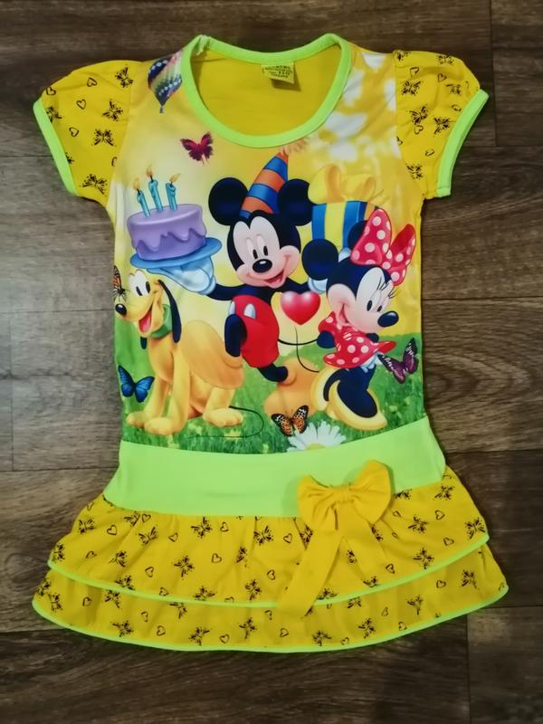 Платье для девочки желтого цвета с микки маусом, в красивом состоянии. Размер 2-3 года 110 см. (длина платья 45, обхват груди 50).