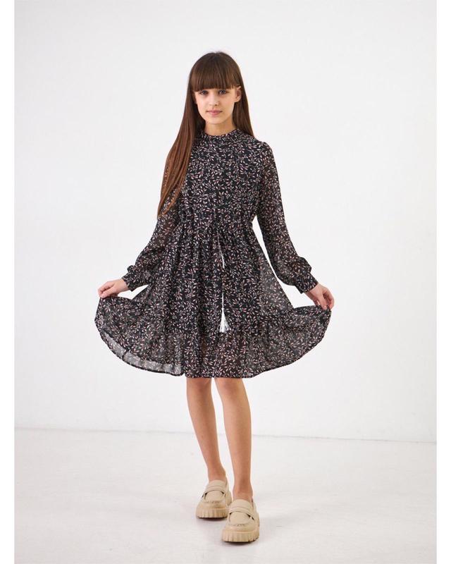 Легкое и элегантное платье для подростков. Платье в черном цвете с россыпью цветов. Станет хорошим выбором для любого праздника и взыскания.