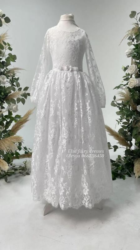- платье KAMILA длинное - из евросетки и кружева шантель - кружево с цветами - рукавчик длинный пышный - поясок Цвет: белый, молочный, пудра Наличие Размер 8-10 г ( рост 134-146 см) Лиф 72 см в объеме Длина 115 см Другие размеры под заказ - ткань евросетка, атлас, кружево, атласный подклад Цена : 3250грн