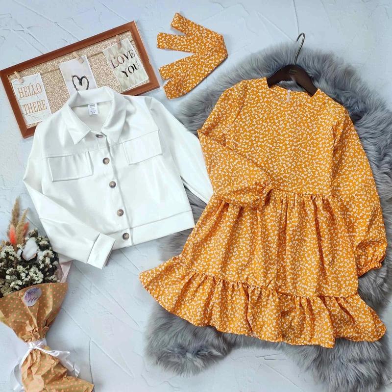 В НАЯВНОСТІ!!! 🌸НОВИНКА 🌸 Стильный весенний комплектик Курточка эко кожа и платье- ткань софт РЕКОМЕНДУЮ!!! 146р (2 шт) длина платья 72,рукав 50, пог 33, длина куртки 44,рукав 51, пог 41 +-1см Цена 770 грн