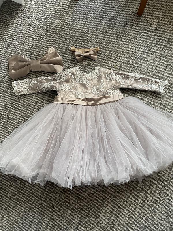 Платье на 1 год, сшили по заказу, ткань покупали сами, большой бант трогается в зади на поясе, + повязка на голову с таким же бантиком. Единственный дефект взади из замочка слетела собачка, нужно заменить замочек - в цену учтены.
